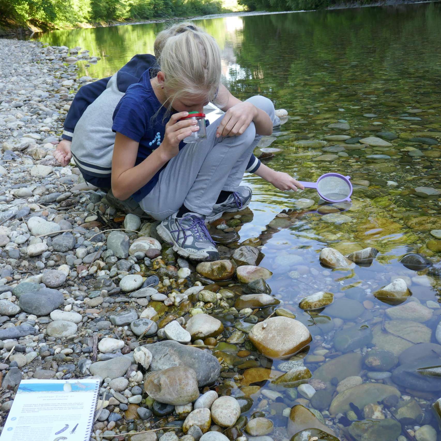 - Eine Beobachtungsidee eignet sich für den Lebensraum Kiesbank (Leseprobe Seite 8). Ergänzend zum Ideen-Set verweisen wir auf die Publikation «Hinaus ans Wasser – ein Unterrichtsprojekt zur Bioindikation» (Link: Download Webseite Pro Natura). Insbesondere die Übersicht «Wirbellose in Fliessgewässern» (Seite 9) ist für die Bestimmung von Kleintieren sehr hilfreich.
