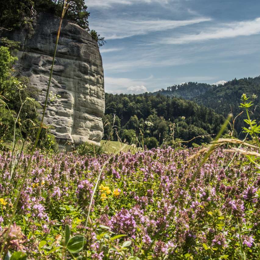 Sandstein gehört, neben Holz, zum traditionellen Baumaterial des Emmentals. Er ist an den meisten repräsentativen und „hablichen“ Bauten anzutreffen. Wieso ist unsere Gegend sandsteinreich? Wie wurde der Stein abgebaut, transportiert, bearbeitet, wozu genau verwendet? Die Wanderung auf dem Sandsteinpfad Krauchthal gibt Antwort auf diese Fragen.